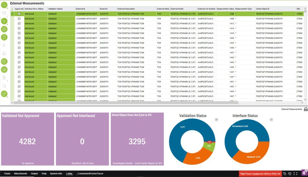 External Measurements integration into IFS Custom Logical Unit with a real-time Lobby visibility on validation and Interface statuses